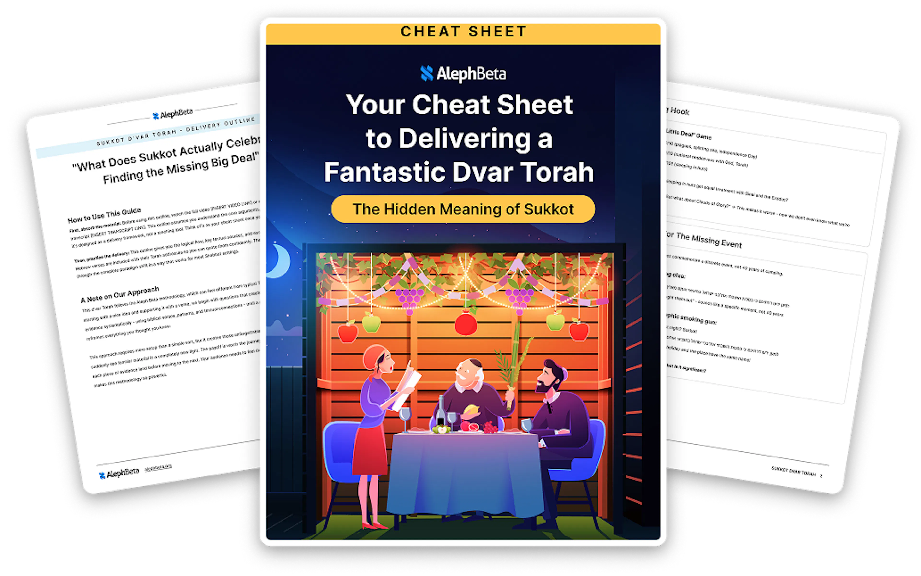 We thought about what we would want to have in hand at our Sukkot table — something that would actually engage our guests and spark meaningful conversation — and we've gathered it for you in this one easy package. It's not just another surface-level Torah thought, it's genuinely compelling content that builds suspense, delivers surprising insights, and will have everyone at your table saying "I never thought of it that way!" And it's completely free when you start a free trial with Aleph Beta. Free! If you don't like it, you can cancel your subscription before your free trial ends, and you won't ever be charged. There's NO risk. And did we mention that by subscribing to Aleph Beta, you're supporting a nonprofit organization that is committed to delivering exceptional Torah content to you and users around the world?